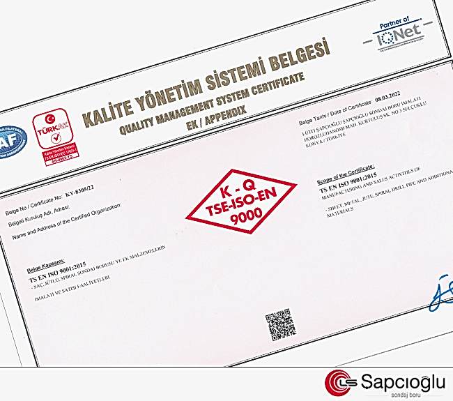 ISO 9001 Sertifikası Ekli