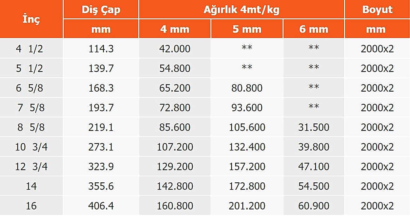 »Şapçıoğlu Sac Sondaj Boruları 4 mm - 5 mm - 6 mm et kalınlıklarında, TSE standartlarına uygun malzemeden yapılmış olup TSEK belgelidir.